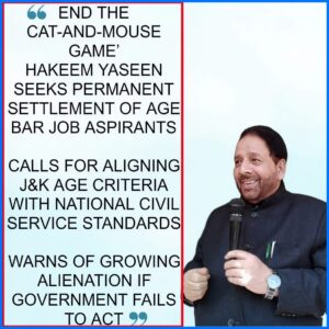 Referring to national standards, Hakeem Yaseen said that at the All-India level the upper age limit for civil services is 40 years, and a similar rule can be implemented in Jammu & Kashmir, where thousands of youth are unemployed.
